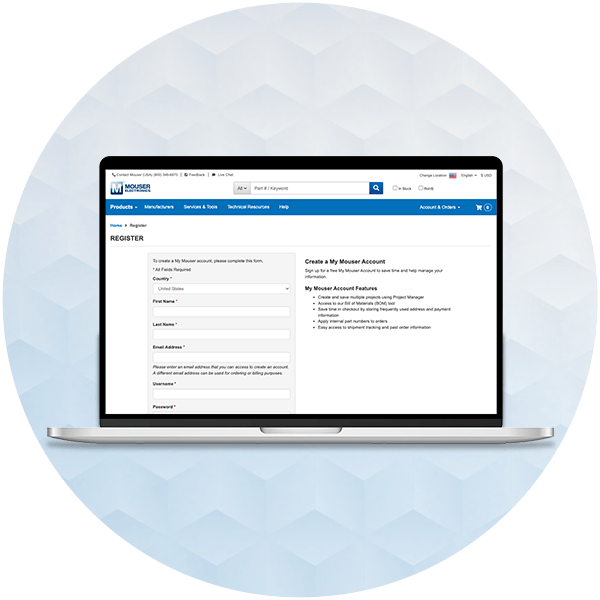 贸泽备有数百万种元器件库存,助力满足您的采购需求。我们还提供丰富的工具、服务和资源,助您应对供应链中断。欢迎访问客户资源中心,获取订单追踪、报价查询、技术支持等服务。