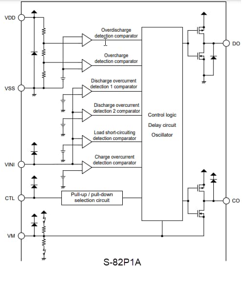 - 2.000V to 3.000V overdischarge detection voltage range (10mV step) with ±50mV accuracy